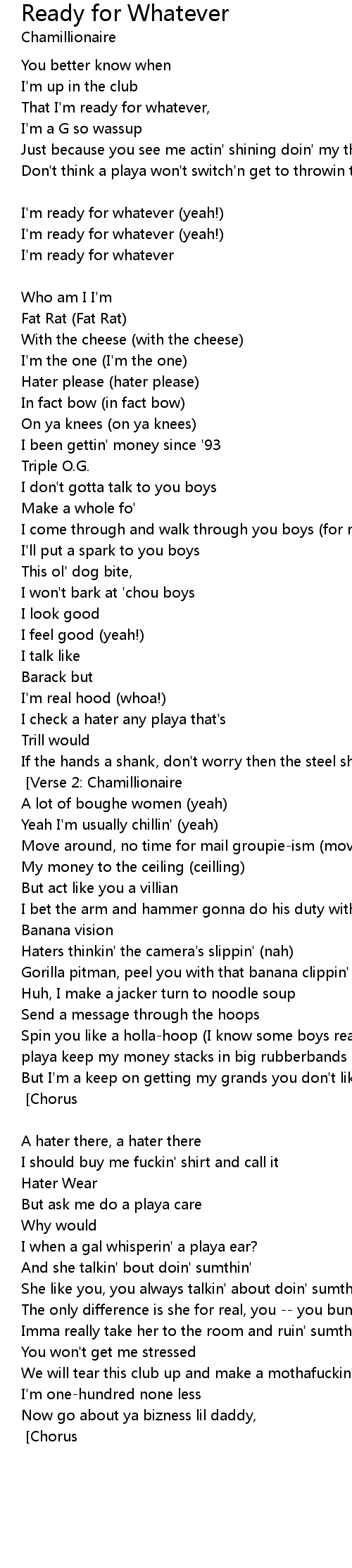 If the hands a shank, don't worry then the steel should [Hook: repeat 2X] [Chorus] [Verse 2: Chamillionaire] |
