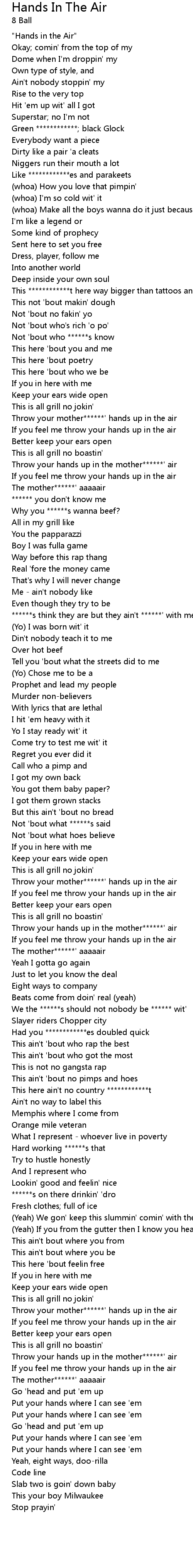 Throw your mother******' hands up in the air |