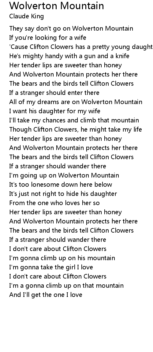I'm going up on Wolverton Mountain |
