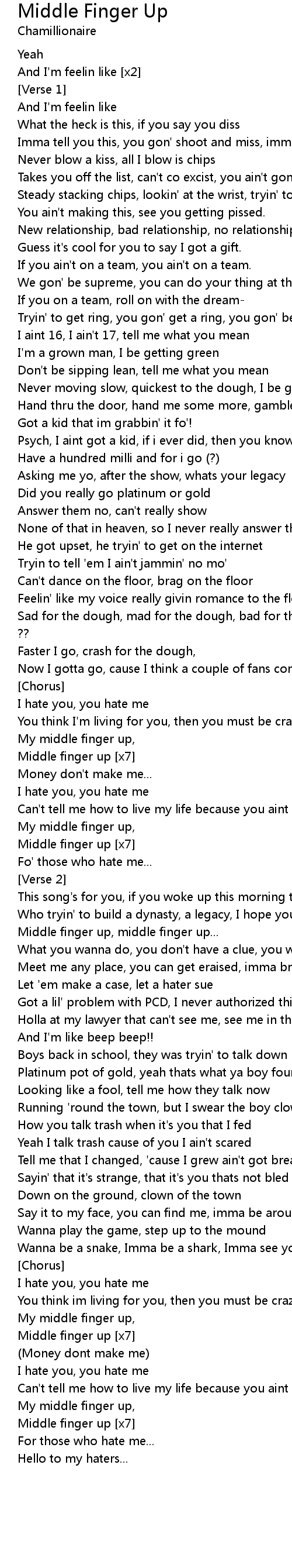 | Song | Middle Finger Up |