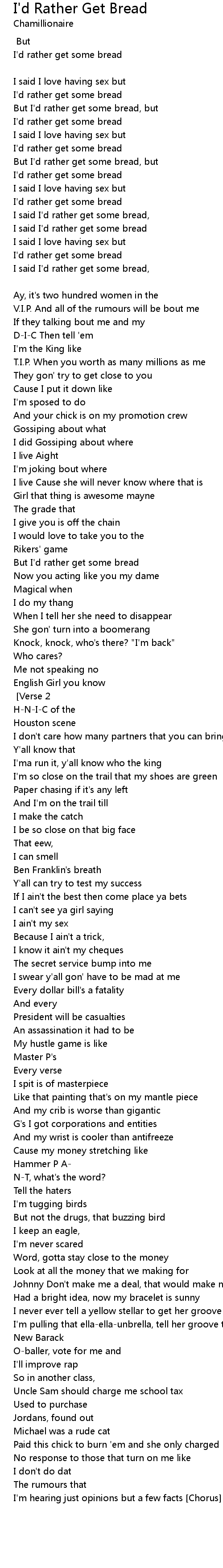 But I'd rather get some bread [Chorus] |
