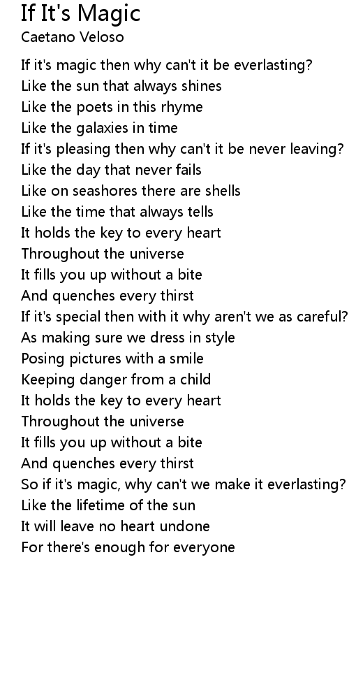 So if it's magic, why can't we make it everlasting? |