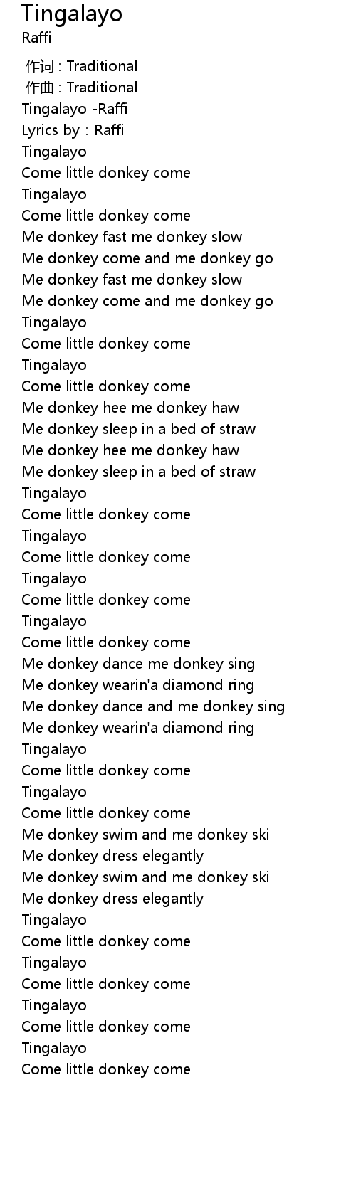 | [00:17.05] | Come little donkey come |