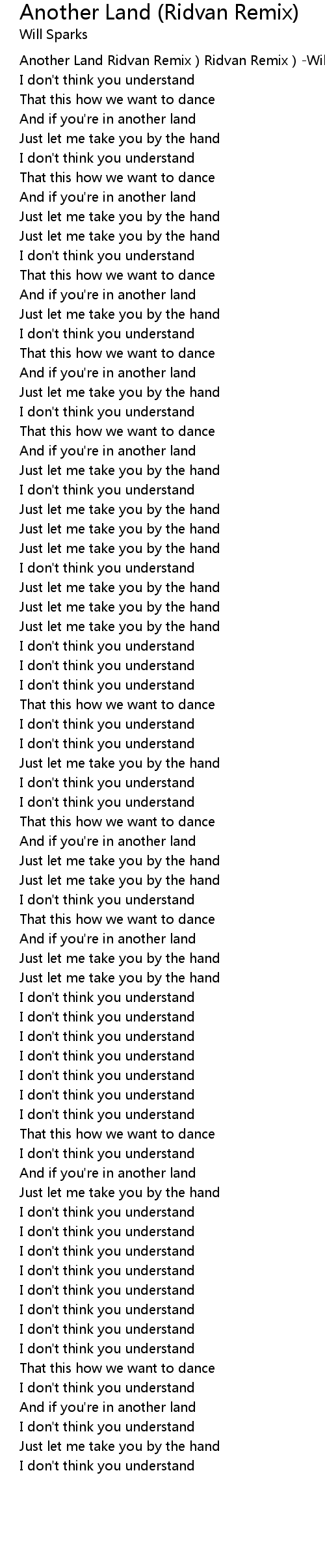 | [00:00.00] | Another Land Ridvan Remix Ridvan Remix Will Sparks |