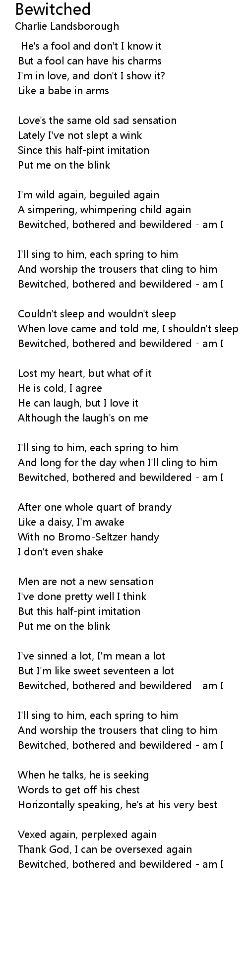 Bewitched, bothered and bewildered - am I |