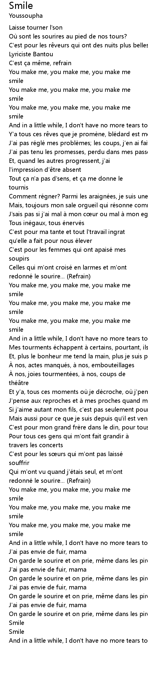 | J' pense aux reproches et à mes proches quand mes dé fauts remontent | |