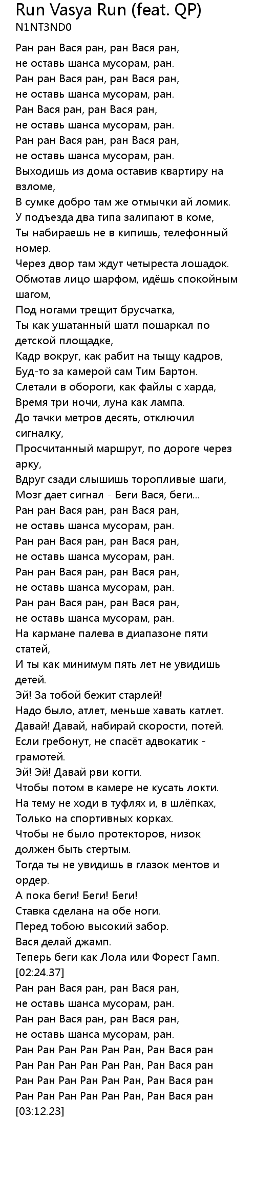 Ран Ран Ран Ран Ран Ран, Ран Вася ран |