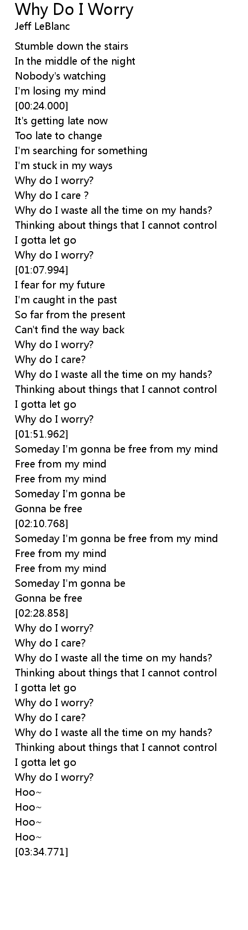 | [03:14.470] | Why do I worry? |