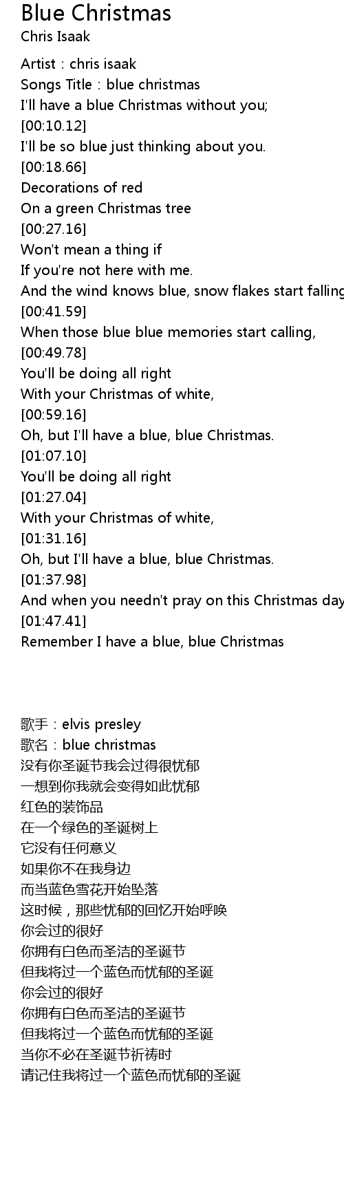 | [01:48.29] | Remember I have a blue, blue Christmas |