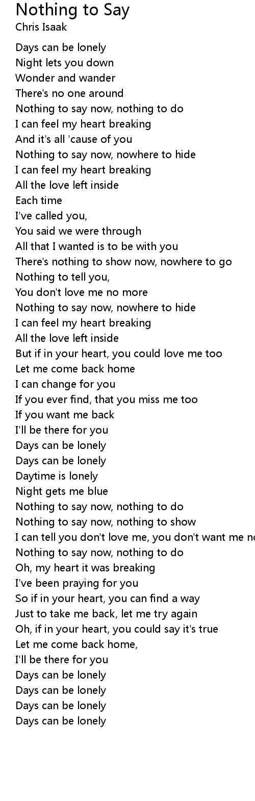 Nothing to say now, nothing to do |