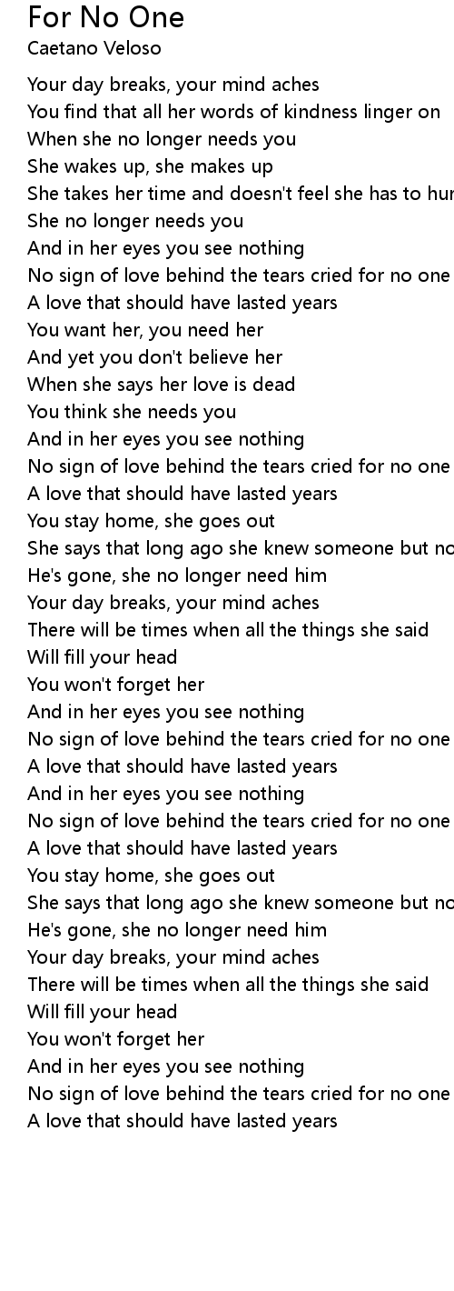 No sign of love behind the tears cried for no one |