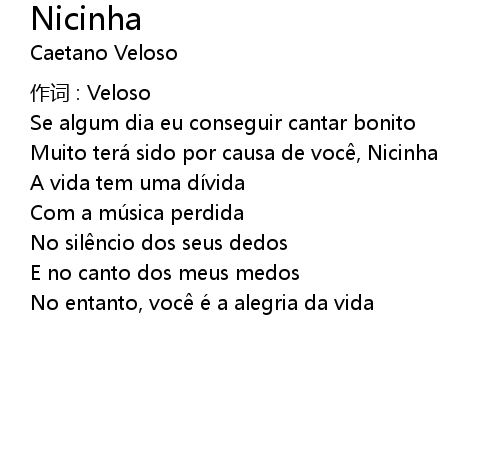 | Muito terá sido por causa de voc, Nicinha | |