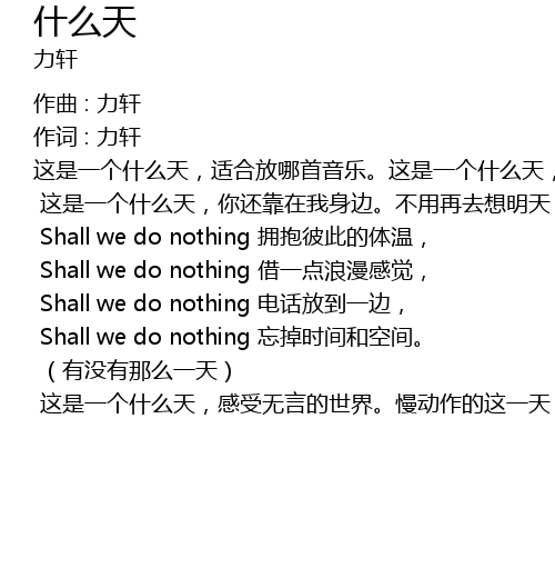 | 这是一个什么天,适合放哪首音乐。这是一个什么天,放空了一些。 | |