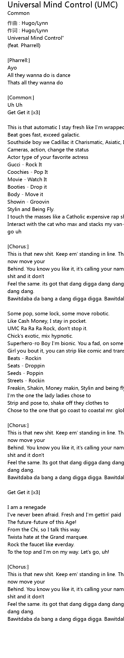 | This is that new shit. Keep em' standing in line. That Universal Mind Control, now move your | |