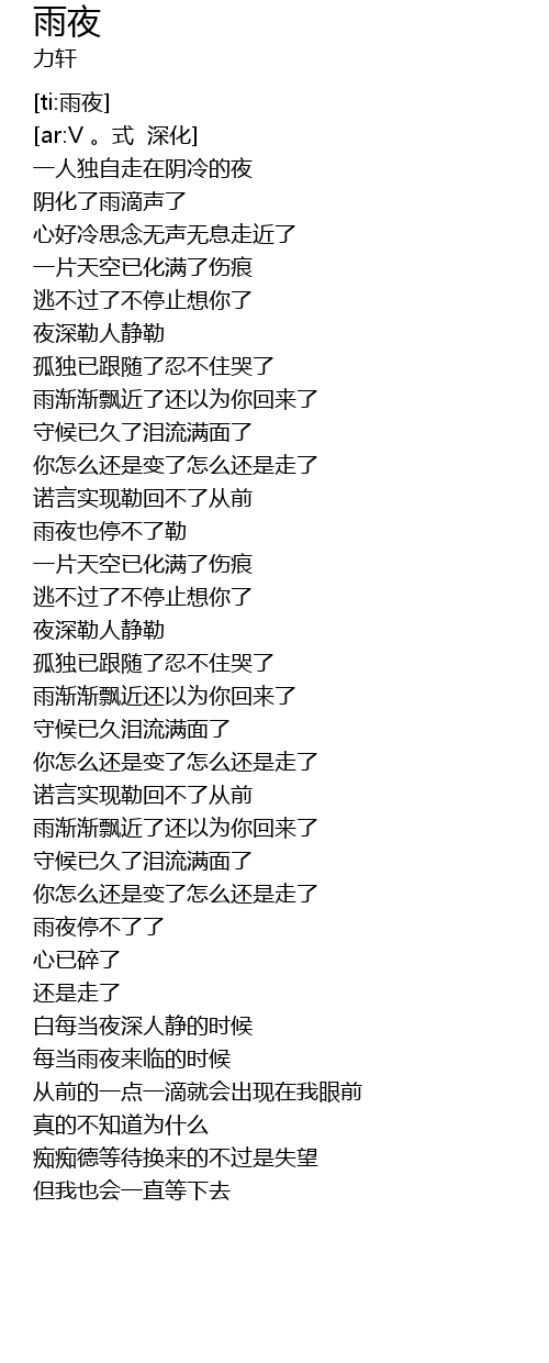 | [00:20.448] | 阴化了雨滴声了 |