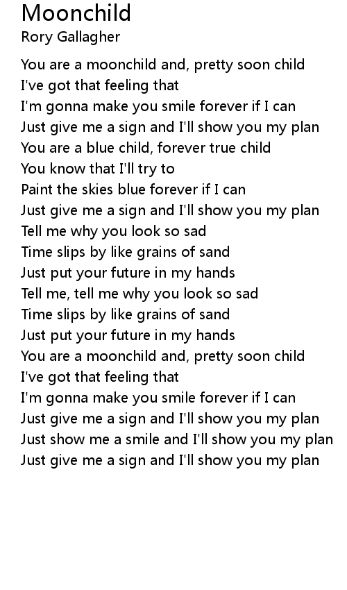 You are a moonchild and, pretty soon child |