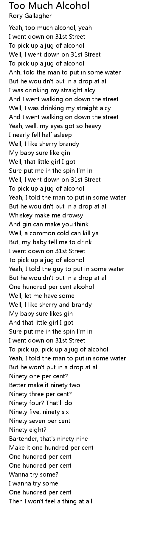 Yeah, too much alcohol, yeah |