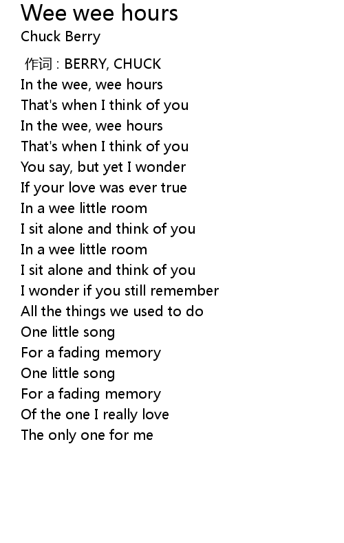 | [00:08.38] | In the wee, wee hours |