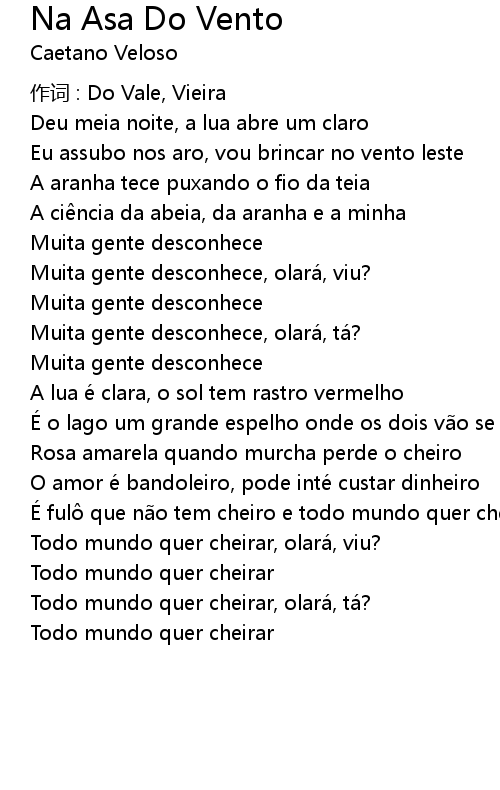 | Eu assubo nos aro, vou brincar no vento leste | |