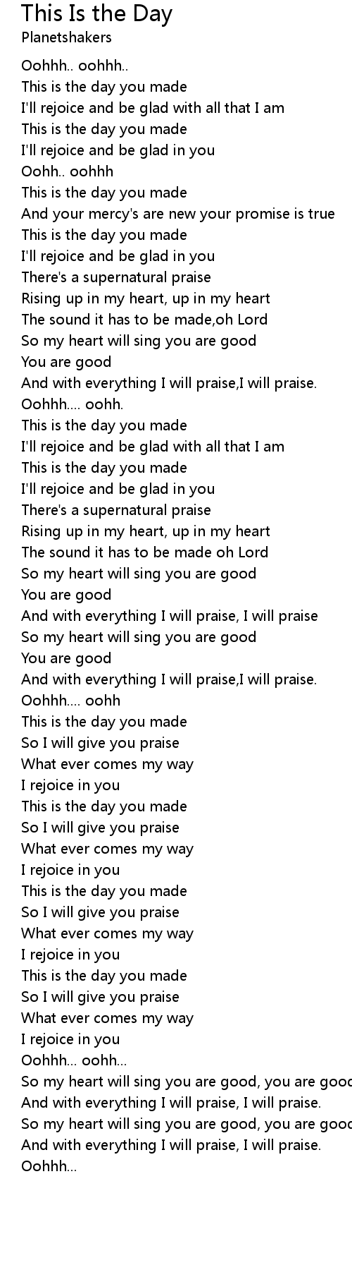 This is the day you made |