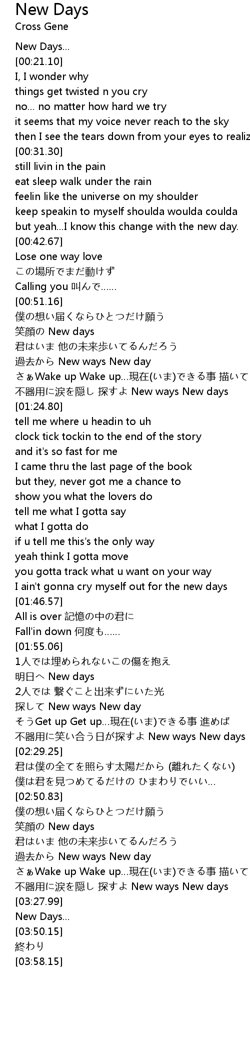 | [03:21.66] | bù qì yòng lèi yǐn tàn New ways New days |
