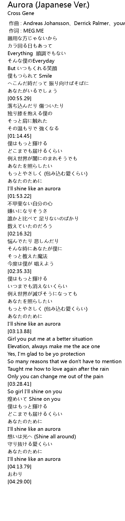 | [00:00.00] | 作曲 : Andreas Johansson、Derrick Palmer、youwhich |