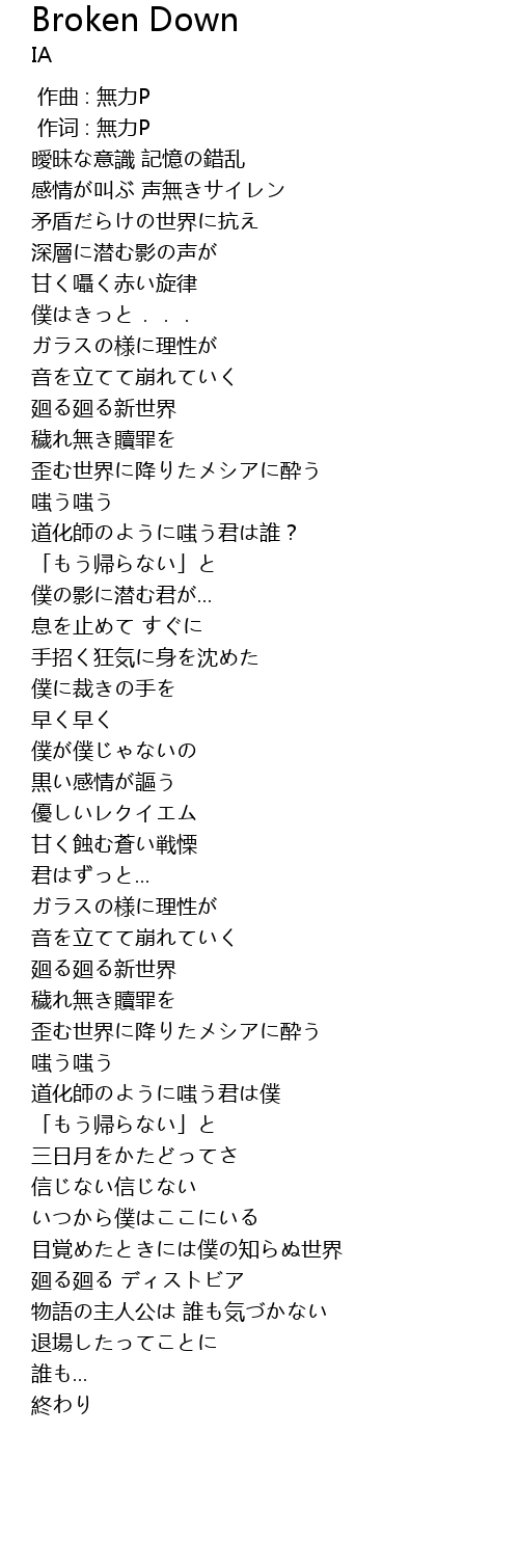 | [01:43.620] | 手招く狂気に身を沈めた |