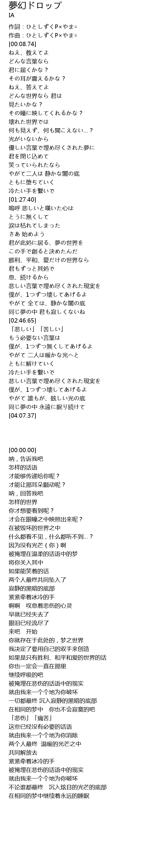 | [00:00.00] | 作詞:ひとしずくP×やま△ |