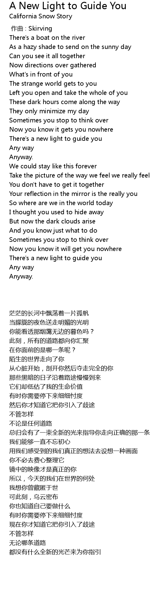 | [03:55.93] | There' s a new light to guide you |