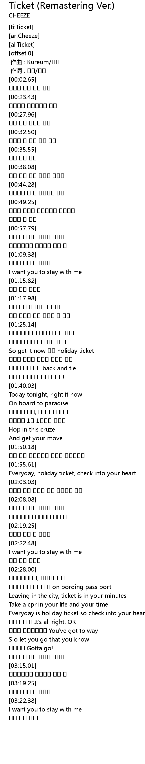 | [01:30.61] | So get it now 여기 holiday ticket |
