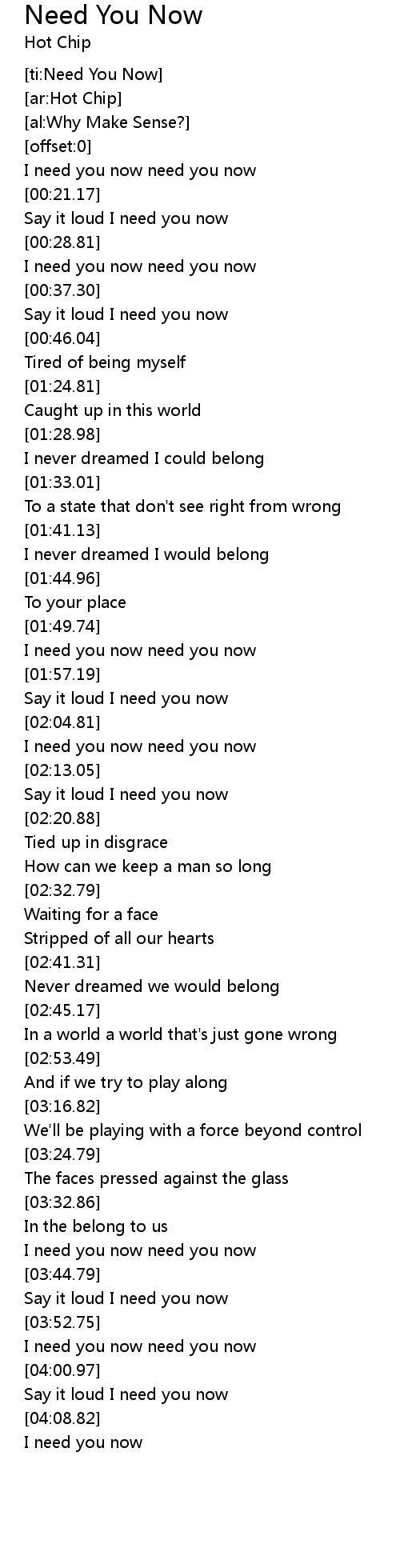 [ti:Need You Now] |