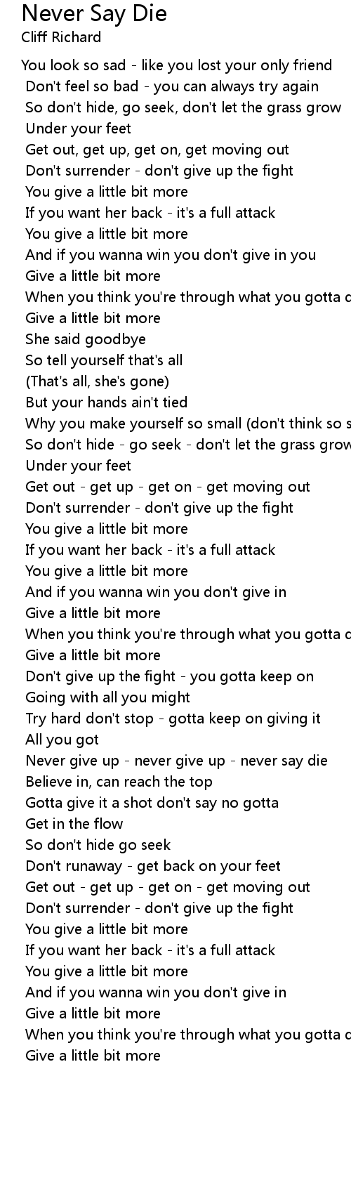 Never give up - never give up - never say die |