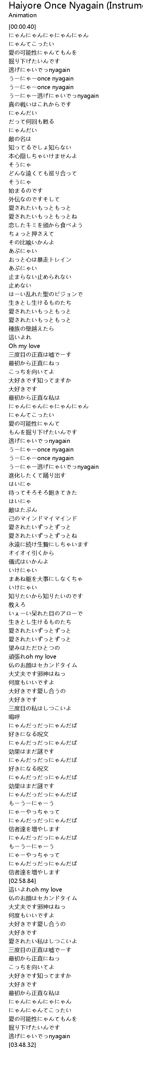 | [01:31.71] | うーにゃー逃げにゃいでっnyagain |