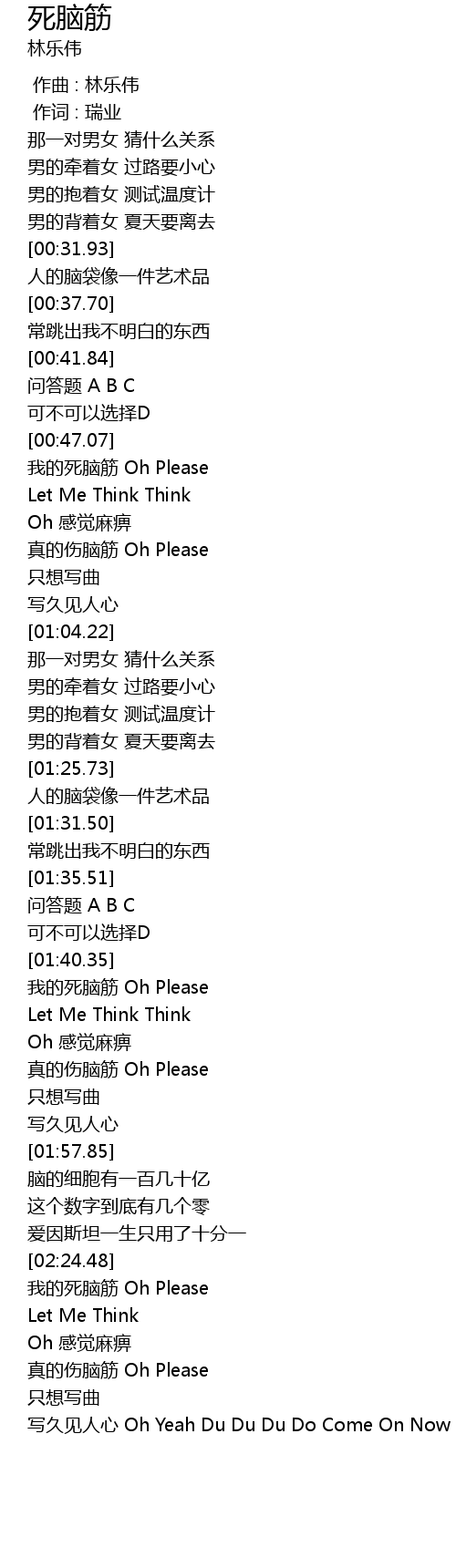| [00:47.63] | wǒ de sǐ nǎo jīn Oh Please |