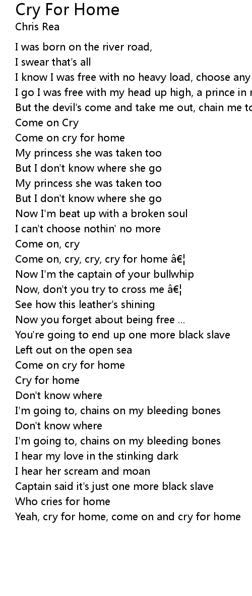 | Come on, cry, cry, cry for home | |