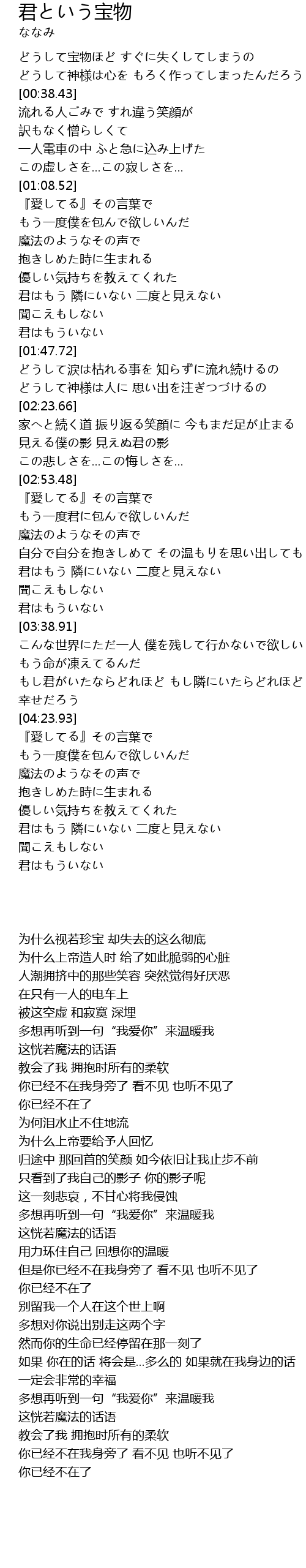 | [03:29.90] | 君はもういない |