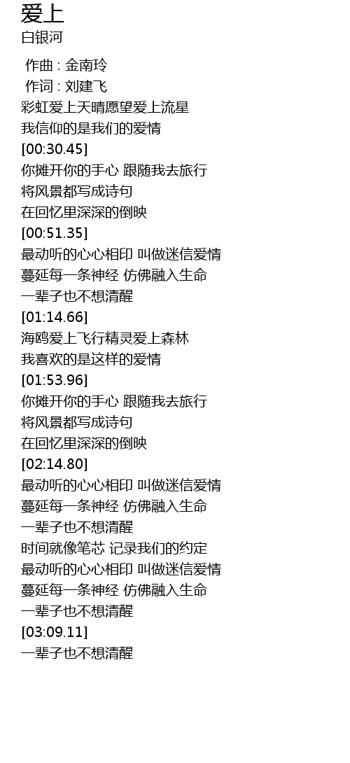 | [00:10.92] | 彩虹爱上天晴愿望爱上流星 |