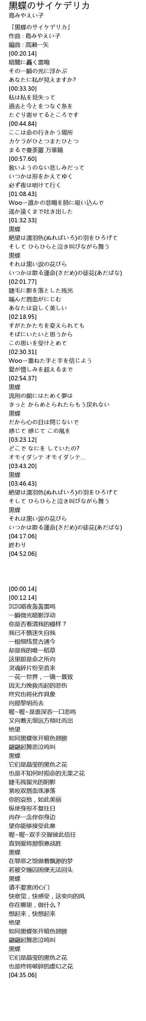 | [03:59.36] | 黒蝶 |