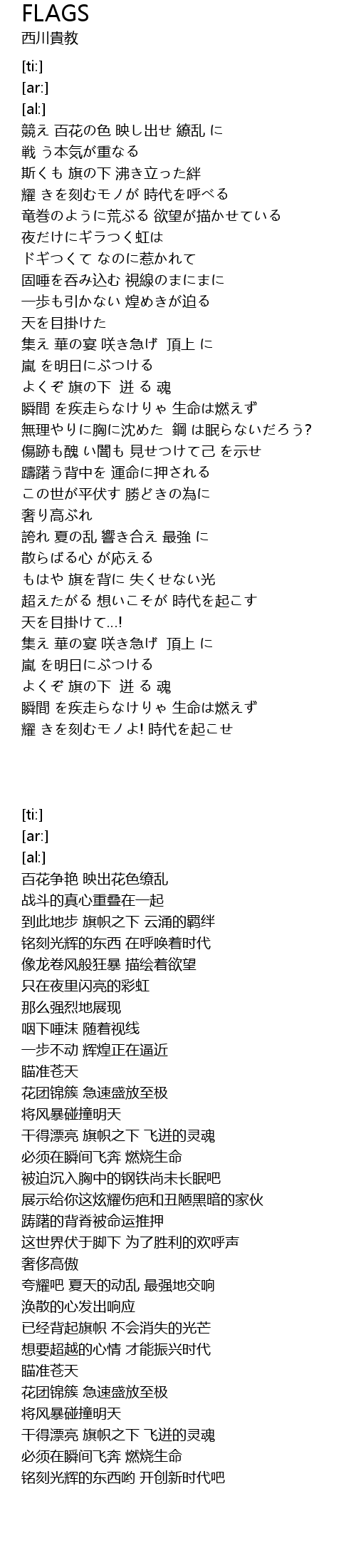 | [02:10.38] | 誇れ 夏の乱 響き合え 最強 に |