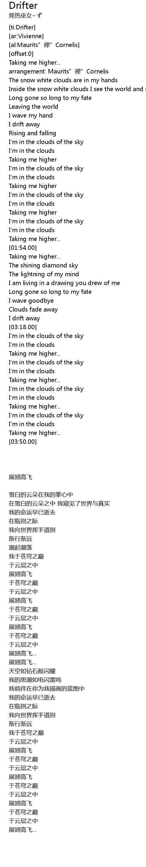 | [00:54.50] | Inside the snow white clouds I see the world and reality |