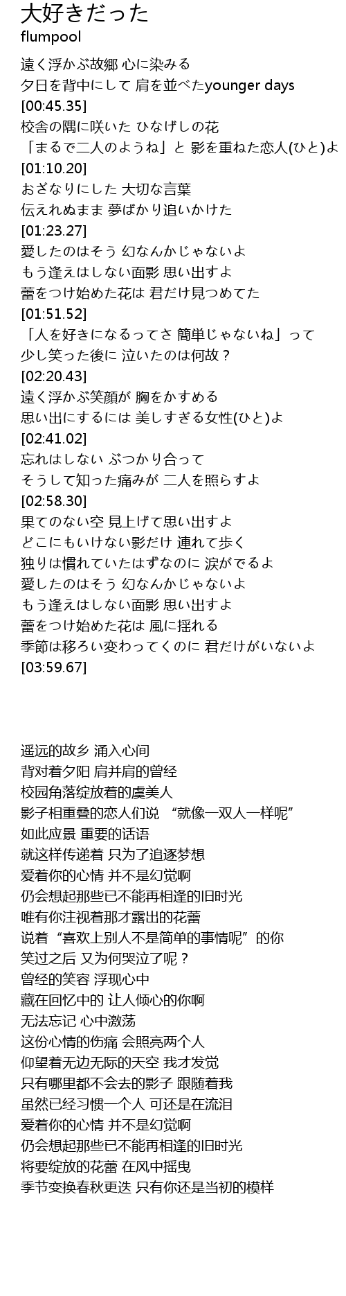 | [03:48.16] | 季節は移ろい変わってくのに 君だけがいないよ |