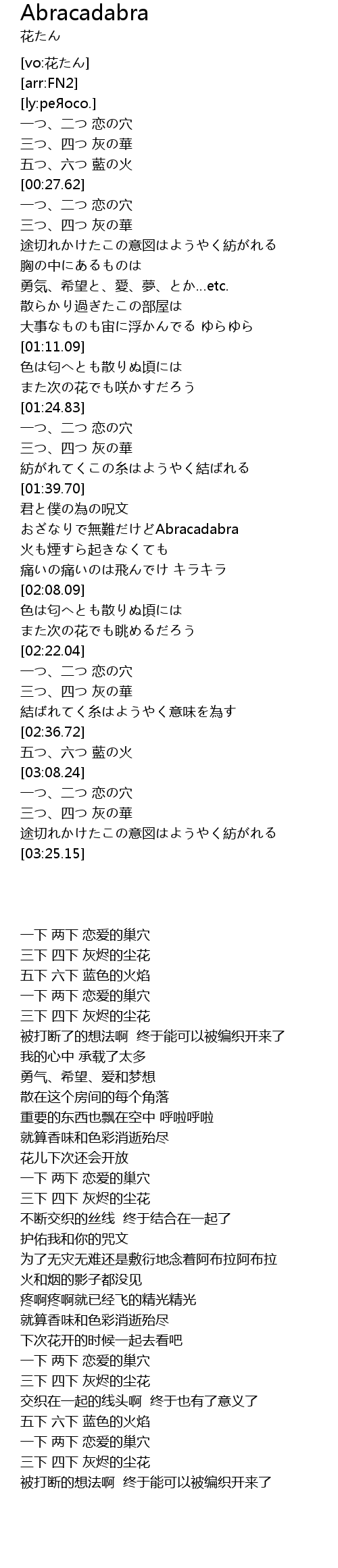 | [01:56.98] | おざなりで無難だけどAbracadabra |