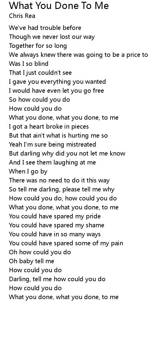 What you done, what you done, to me |