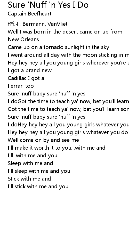 | Sure ' nuff baby sure ' nuff ' n yes | |
