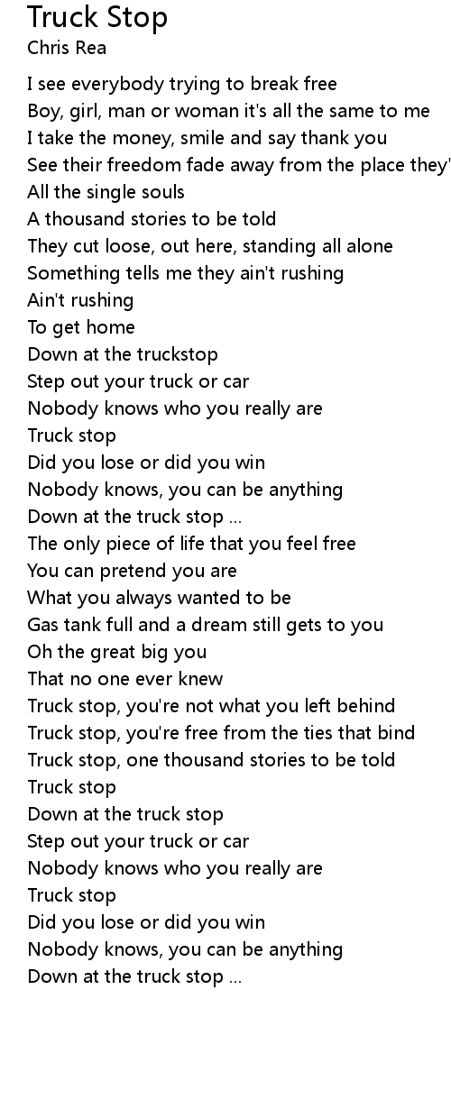 Truck stop, you're free from the ties that bind |
