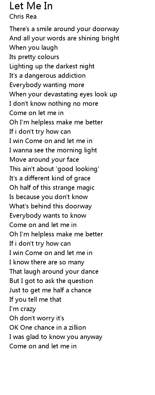 Come on and let me in |