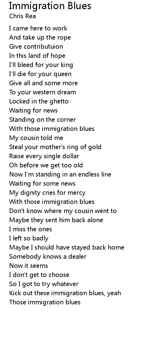 Kick out these immigration blues, yeah |