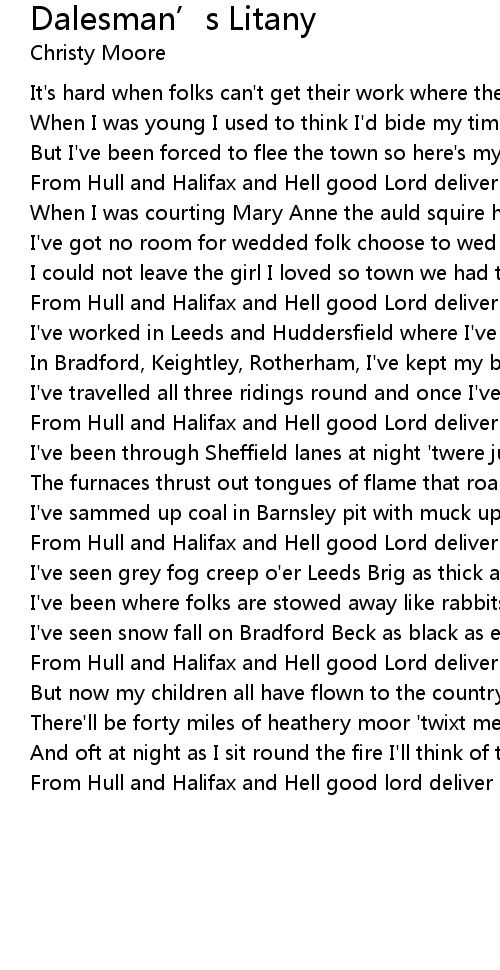 In Bradford, Keightley, Rotherham, I've kept my bairns and lass |