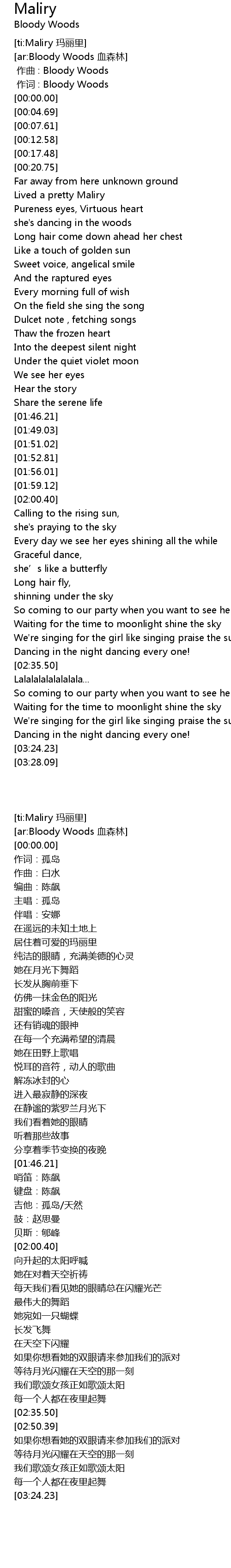 | [00:00.00] | 作词 : Bloody Woods |