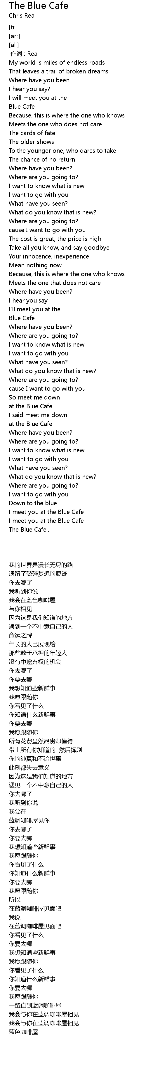 | [03:51.64] | I meet you at the Blue Cafe |